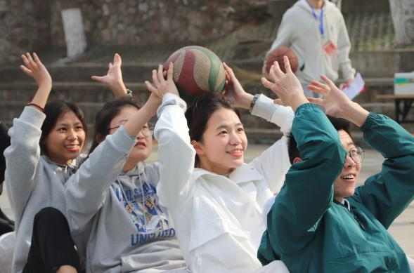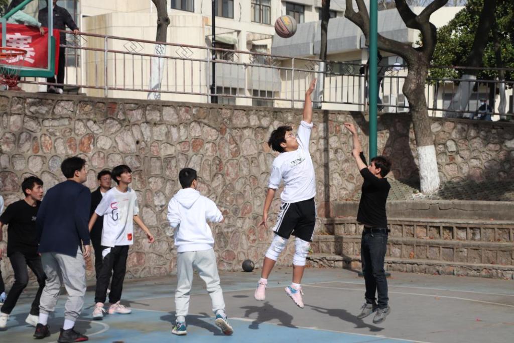 早上八点半,各班参赛队伍准时到场,开始上午的趣味项目。同学们躺成一排,以仰卧起坐的形式运球,排球在同学们手中相互传递,由队伍最前端同学投出。篮球项目中,同学们娴熟地运球投球,拍击出青春的风采。场上的同学们热火朝天,奋力传球、彼此加油;场内外的同学欢呼喝彩,助威声、欢笑声此起彼伏,欢乐洋溢在每一位同学脸上。