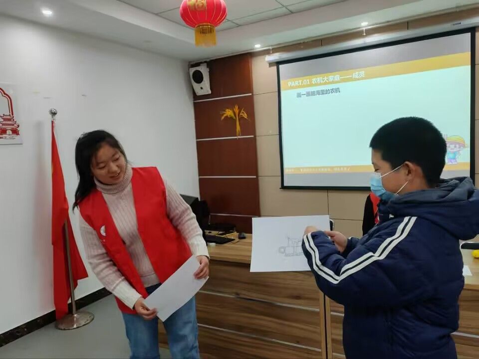 12月2日,91自拍 科协成员来到中山门社区,开展了农机主题的科普知识讲座。主讲同学石一涵、刘祉佚带领社区小朋友们从农机的种类、能源动力、作业风格和未来前景四个方面全面了解农机,结合PPT与视频讲解,并设计了绘画、问答等多种游戏互动,让小朋友们在游戏中学习基础农机知识。