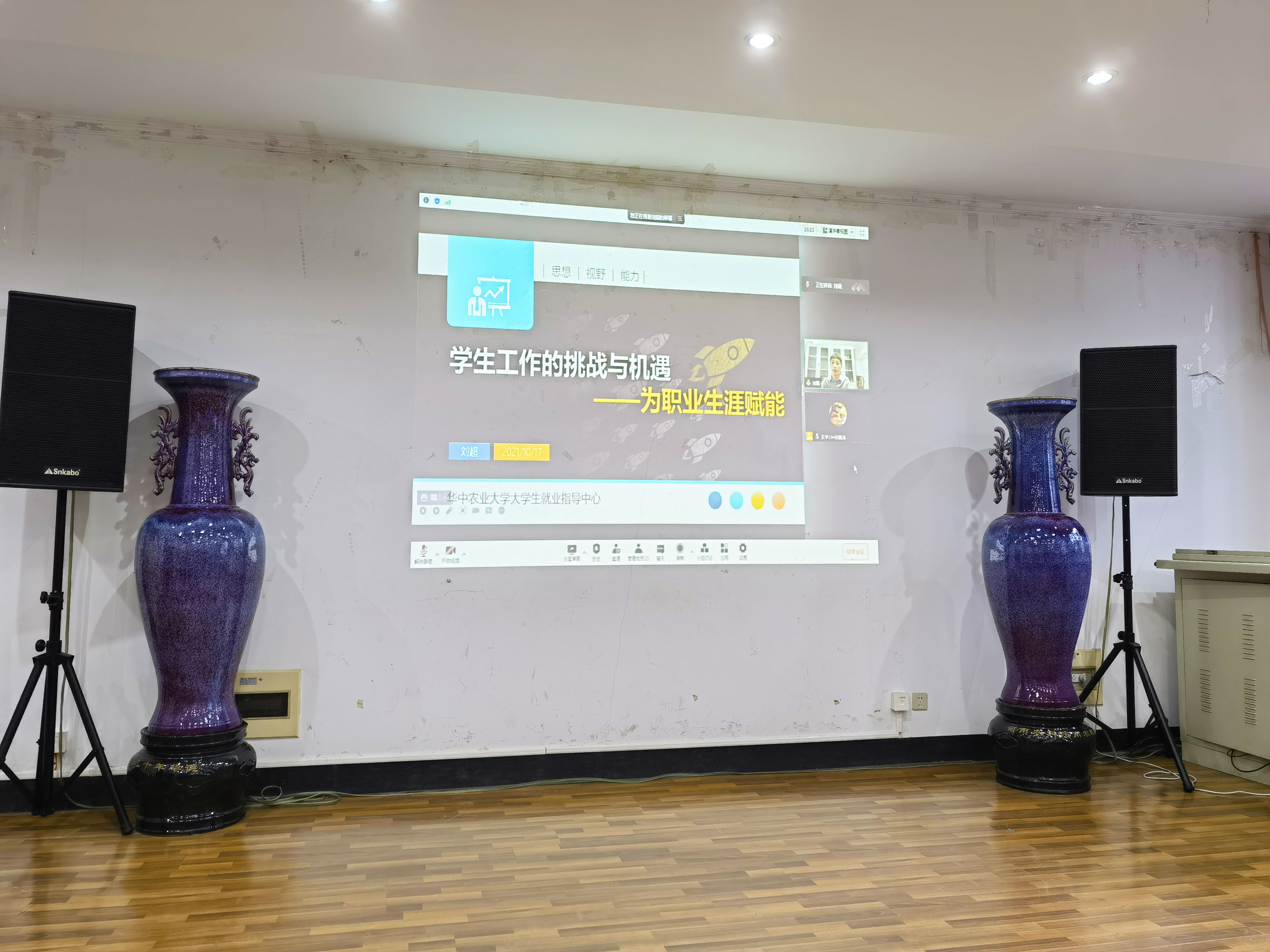 10月17日下午,91自拍 2021-2022学年学生组织主要学生干部培训会在生科楼E1001召开,本次培训会邀请到华中农业大学的刘超老师为大家带来 “学生工作的挑战与机遇—为职业生涯赋能”主题分享,学院本科生辅导员孙小雯、学生组织主要学生干部参加了此次培训。