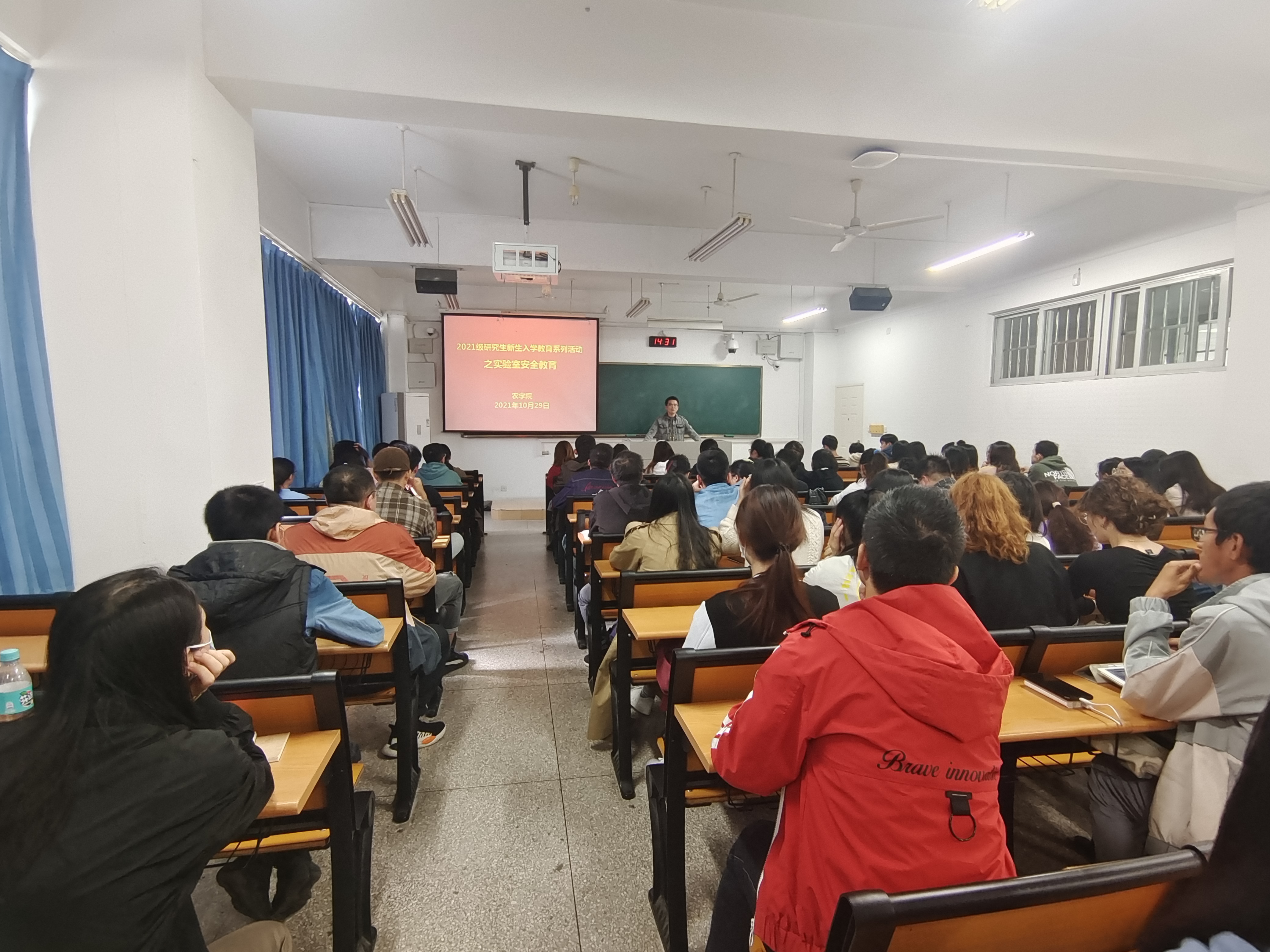 10月29日14时30分,91自拍 组织开展了以实验室安全为主题的研究生新生入学教育,本次活动旨在提升研究生实验室风险防范意识和防范能力,建设以人为本的安全实验环境。本次活动由研究生辅导员陈杰主持。