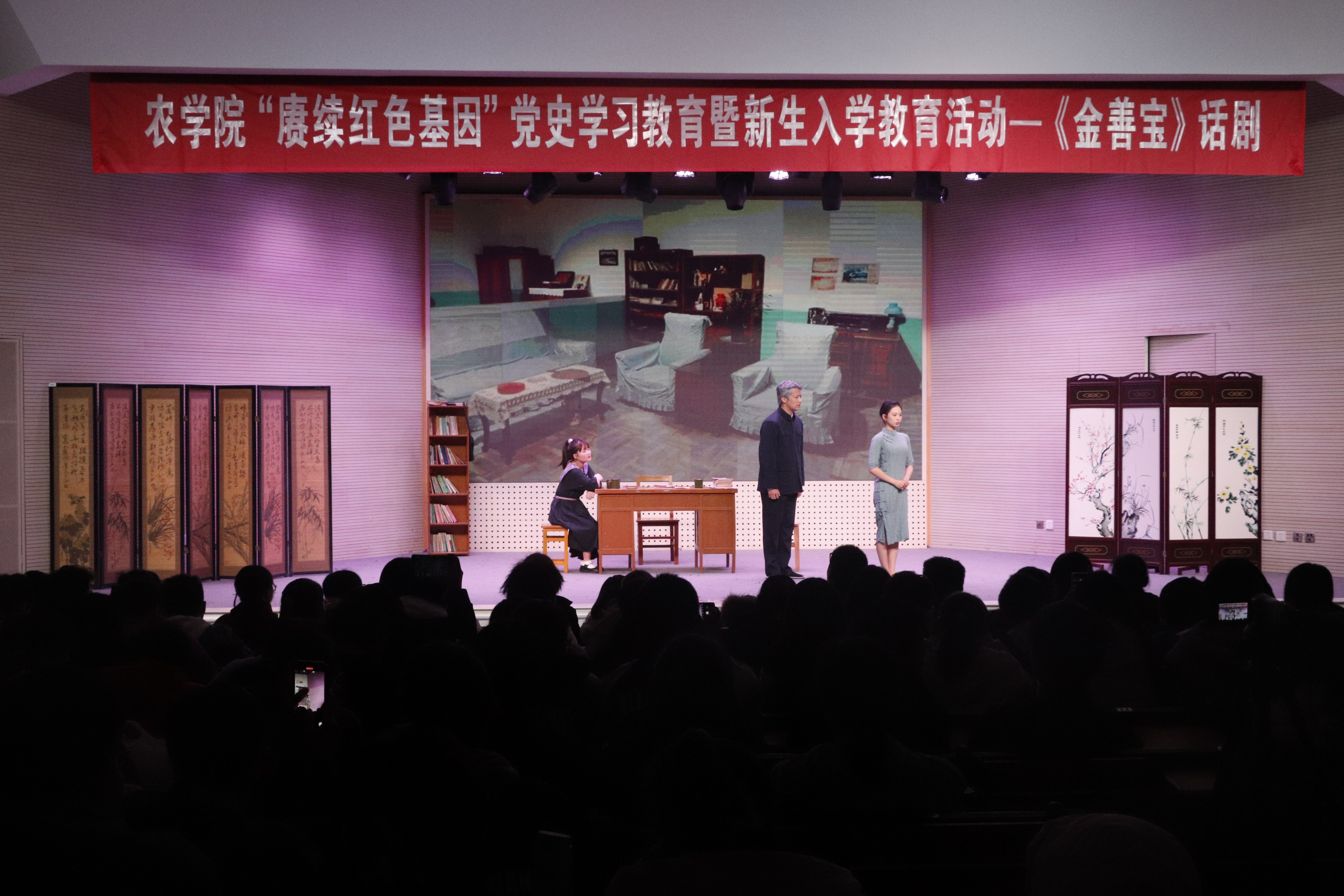 11月27日晚,由91自拍 原创的信仰公开课《金善宝》话剧在91自拍 大学生活动中心公演,91自拍 大一大二同学共同观看了此次演出。