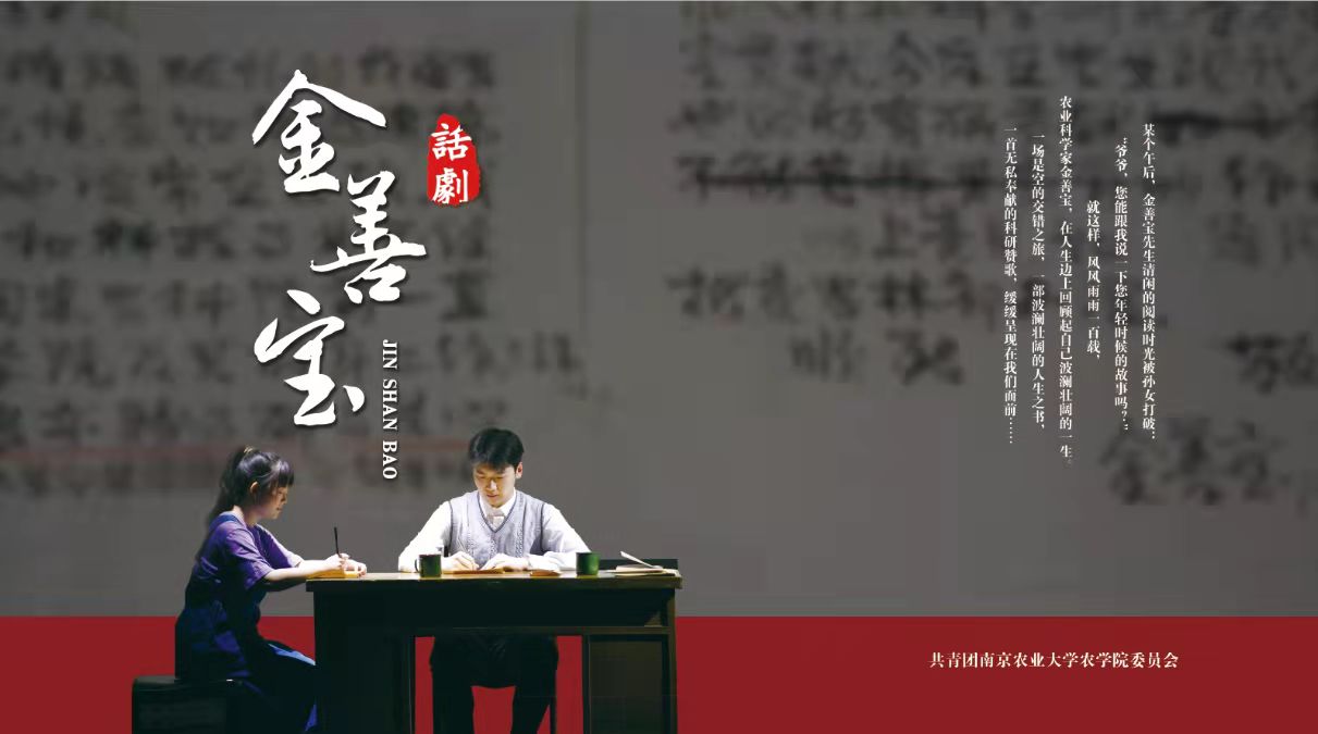 据了解参与本次话剧的演员们均为今年4,5月份参演的同学,他们怀揣着对金善宝老先生的敬仰之情,通过对金善宝先生生平事迹的整理及对《金善宝》文集的学习,经过生活体验、剧本打磨、日常排练等环节,用自己的方式去感知金善宝先生的情感与思想,真挚而庄重地演绎了新一代的南农人、农学人对金善宝老先生躬身为农、心怀家国和热心教育的敬畏与敬仰。