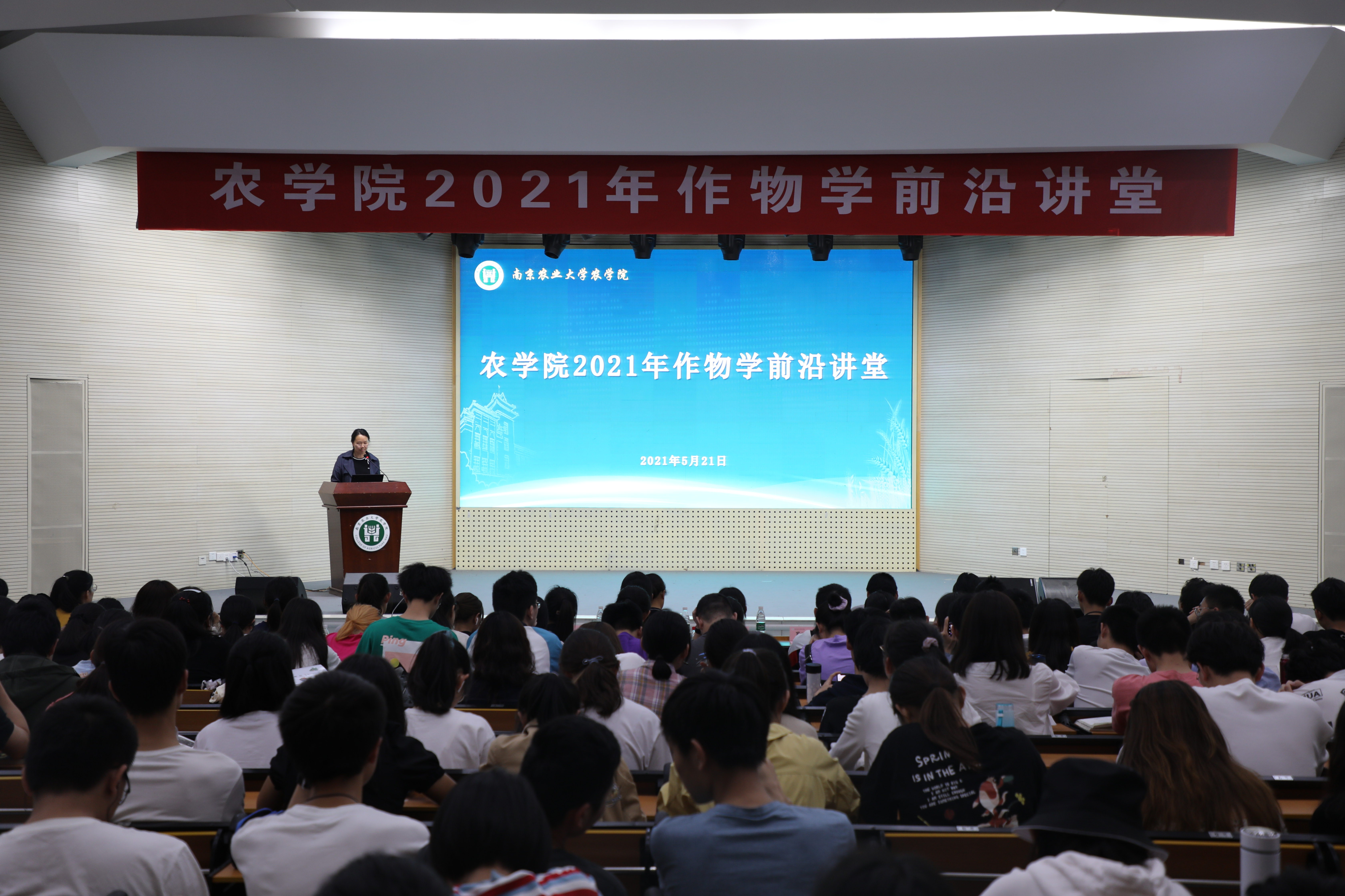 5月21日晚,91自拍 本年度第一期作物学前沿讲堂在大学生活动中心顺利举行。遗传育种系棉花育种课题组郭旺珍教授、农学系棉花栽培课题组王友华教授、智慧农业系作物生态系统模型与管理课题组罗卫红教授、种业科学系鲍永美教授、高层次引进人才代表李姗教授、遗传育种系小麦遗传育种团队曹爱忠教授应邀给大家作报告。