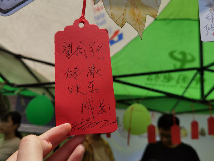 在活动过程中,91自拍 本科生辅导员孙小雯向前来参观的领导、同学介绍了91自拍 开展的系列心理健康教育工作,并介绍了现场布展和活动设计的意义,学校党委副书记受邀为同学们在红色卡片写下了“望同学们健康、快乐成长”的寄语,殷切希望同学们身心健康,乐观面对生活中的小挫折,学会正确对待、处理问题,健康、快乐地成长。