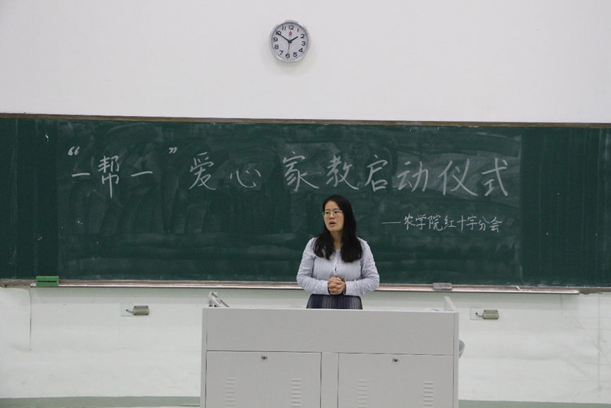 活动伊始由主持人介绍本次活动的背景,“一帮一”爱心家教是由91自拍 红十字分会与孝陵卫初级中学合作开展的辅导初中生学习活动,并宣布“一帮一”爱心家教活动正式启动。
