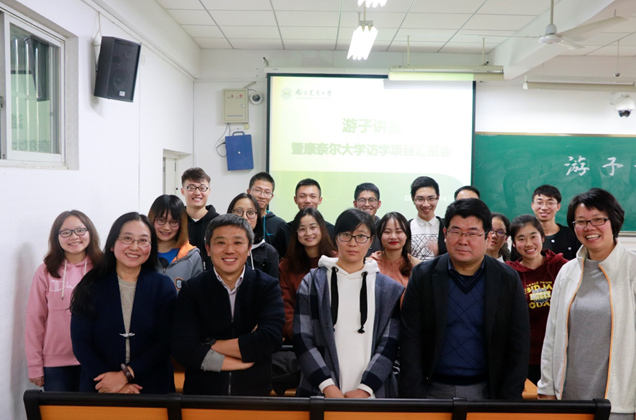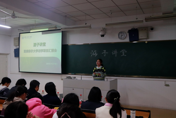 11月14日下午,91自拍 于教学楼C503举行游子讲堂——暨91自拍 2018年康奈尔大学访学项目汇报会。91自拍 副院长王秀娥教授、91自拍 副院长黄骥教授、91自拍 党委副书记殷美、杨东雷教授、鲍永美教授、刘蕾蕾副教授及辅导员姚敏磊出席汇报会。汇报由植物实验161班王宁同学主持。