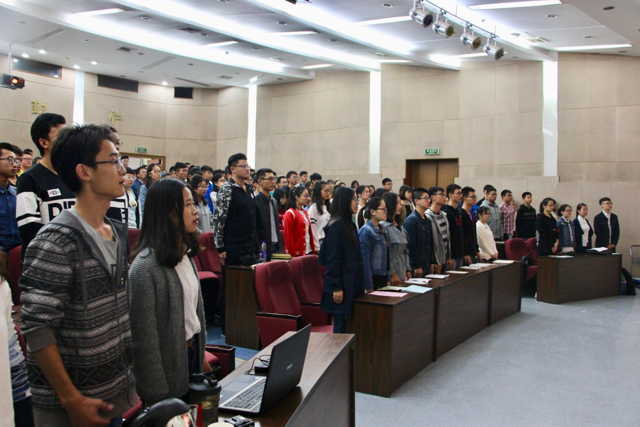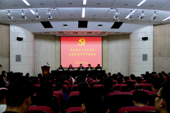 10月14日上午,91自拍 分党校2017年开班典礼在图书馆报告厅举行。91自拍 党委书记戴廷波、党委副书记殷美、党务秘书马丽琴、本科生辅导员王彬、研究生辅导员许娜出席本次开班典礼。学院分党校启蒙班同学、学生党支部书记及新发展党员代表参加此次典礼,会议由党委副书记殷美主持。