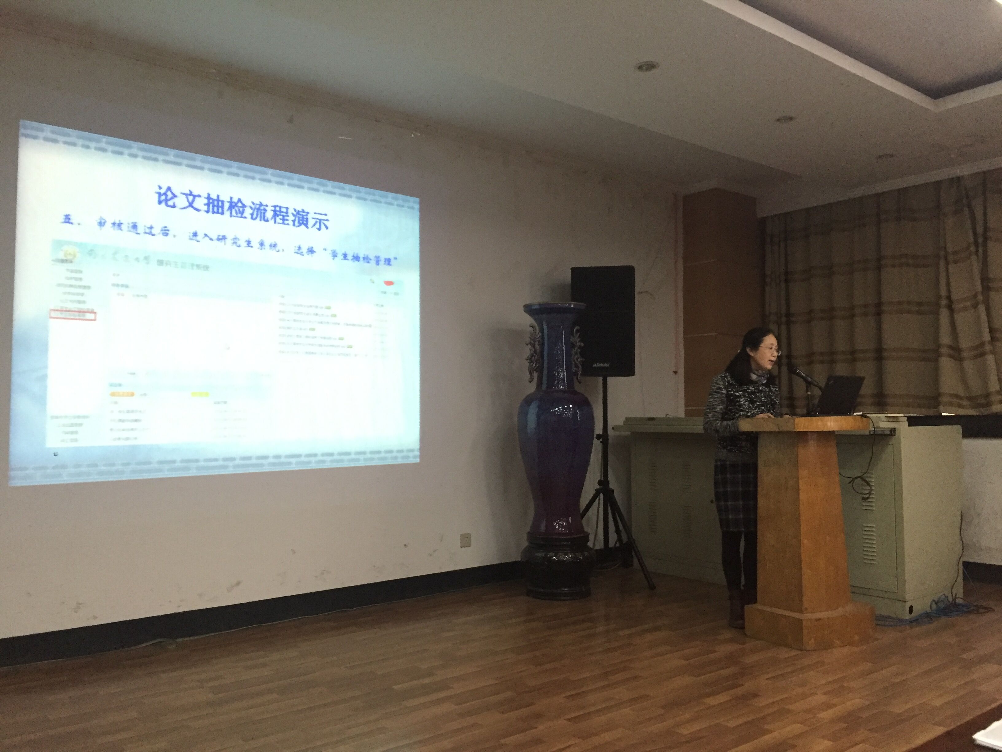 首先,研究生秘书李雪芹老师就论文答辩和学位申请等相关问题进行了详细说明。李老师强调,所有毕业生要在完成培养方案规定的学分、完成中期考核等培养环节、完成学位论文撰写的基础上进入答辩流程。具体答辩程序分为论文查重、硕士论文抽检(博士预答辩)、论文评阅、申请答辩、正式答辩等几个环节。针对每个环节的具体操作方法和需要注意的问题,一一进行了专业解答。
