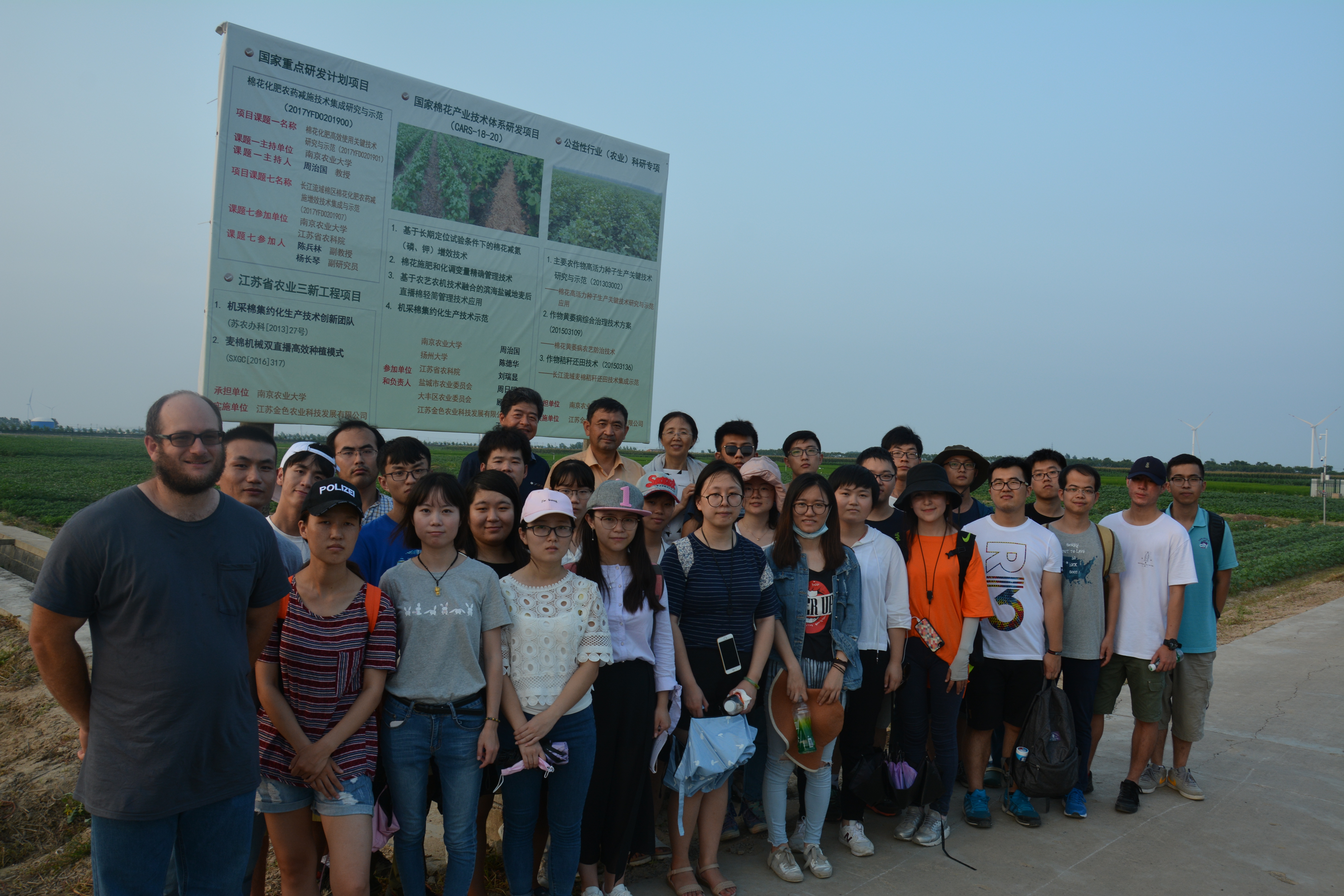 下午四点,在王宣山研究员以及盐城农委领导陈标、朱永歌的带领下,大家在基地现场参观水稻、玉米、棉花等作物的试验地,大家都对自己所在研究领域以外的其他作物有了进一步了解。