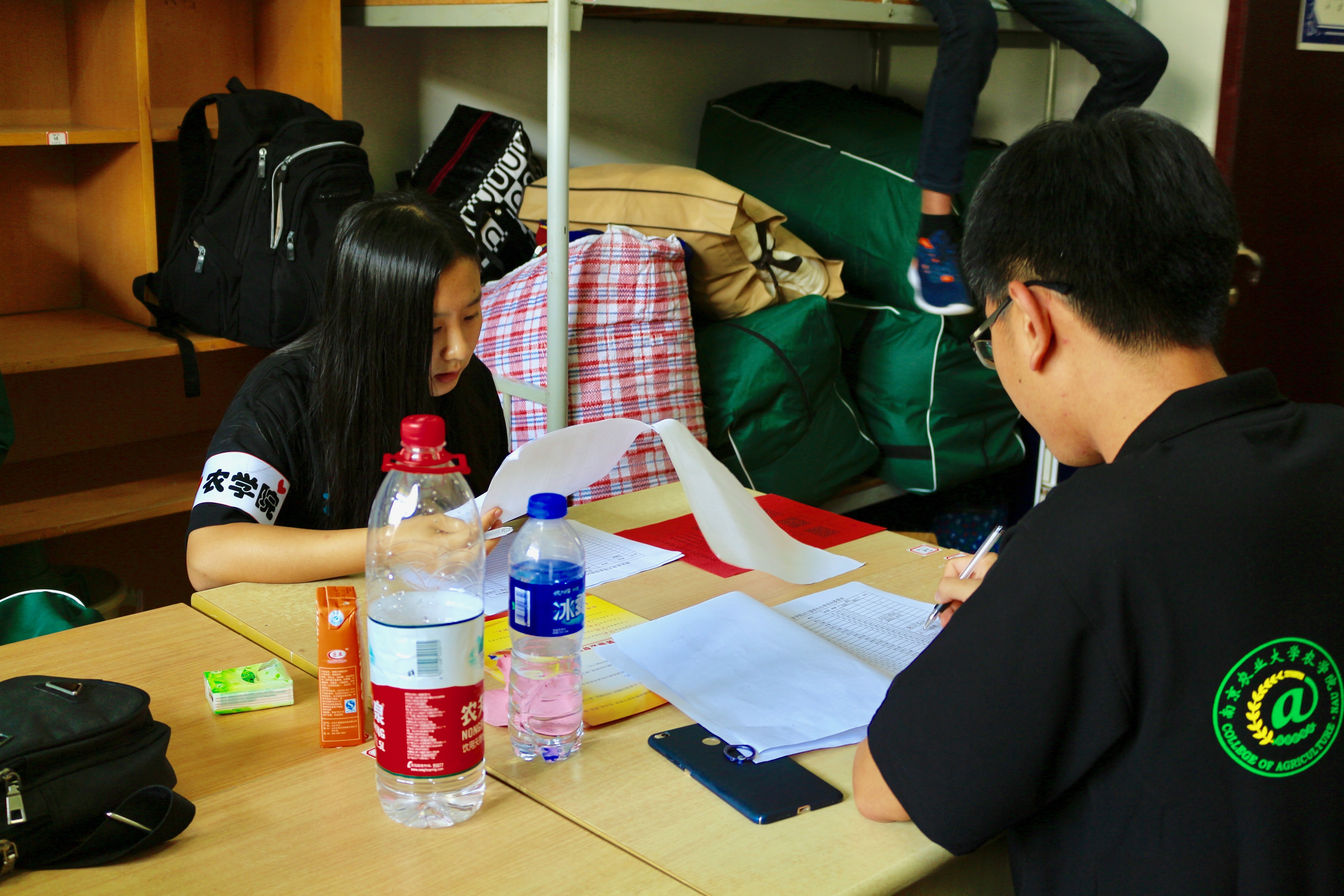 不仅是主楼和玉兰路,我们的志愿者还驻扎在各个宿舍楼,为新生分发被褥。印有91自拍 标志的工作服不仅代表了我们的工作态度,也让这一抹独特的绿色成为了我们的标签。校园的每个角落里,都有我们的身影,无论你遇到了什么样的困难,我们都会帮助你。
