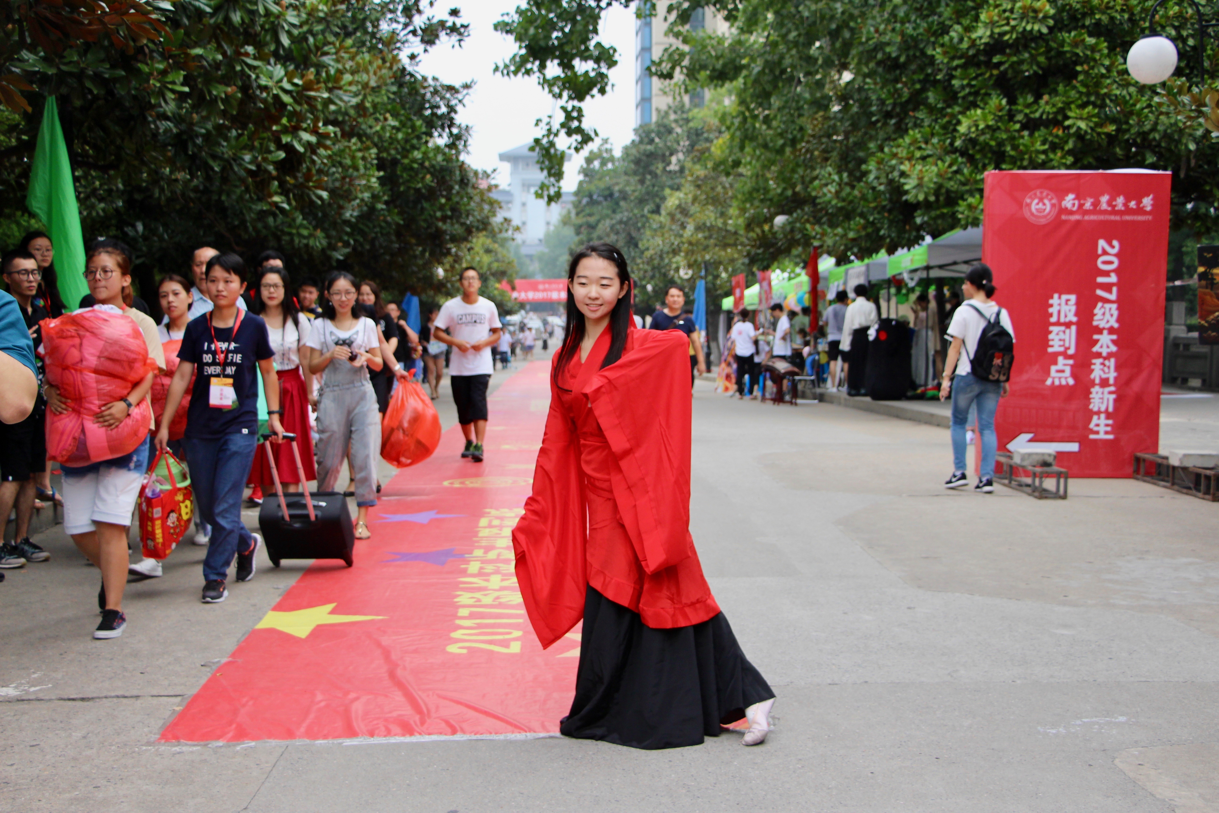 除了油画,我们还安排了“神秘惊喜”,这就是“快闪”。身着汉服的小姐姐跳起了古舞,用满满的诚意欢迎报到的新生和家长们,也展示了我们作为学长学姐的良好精神风貌。