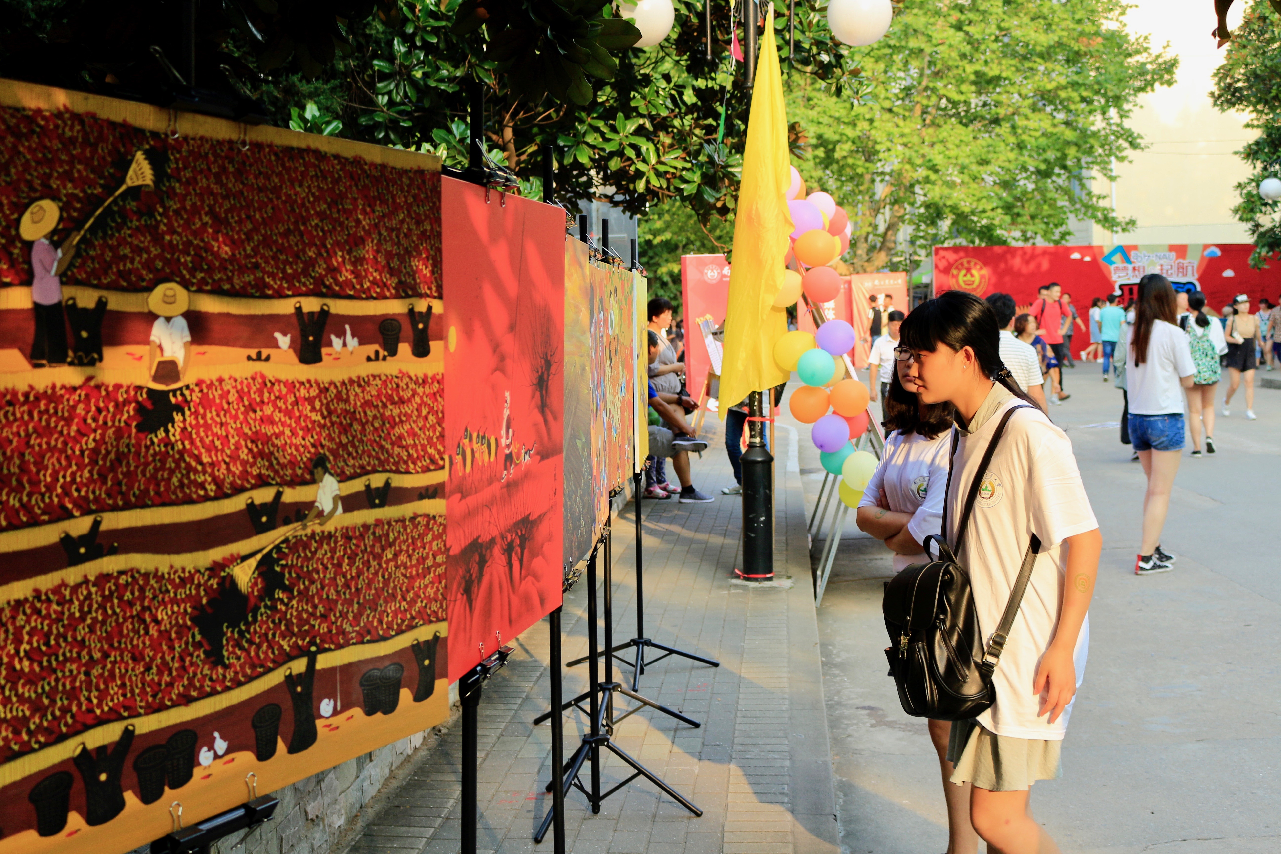 这次迎新活动的一大亮点是由陕西农民创作的油画。他用鲜明的色调和强烈的色彩碰撞为我们诠释了他和以他为代表的陕西农民的日常田间生活。这像年画一样的风格令人望去就不禁感觉喜庆,一派欣欣向荣的风气顿时扑面而来。引入他的画作不仅是对民间艺术的尊敬,更是拉近了同学们与实际农业生产生活之间的距离。