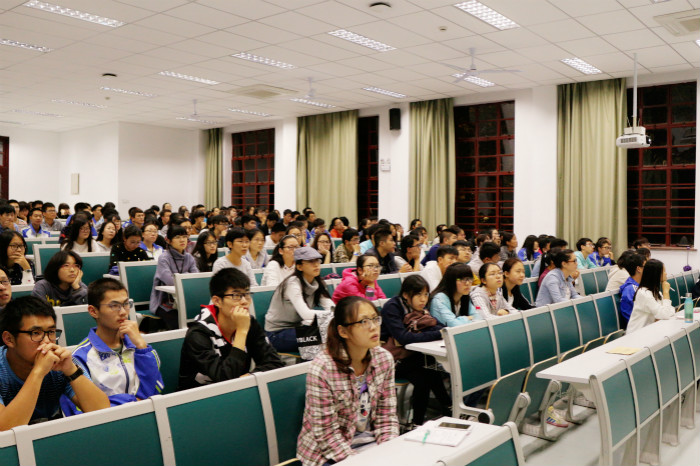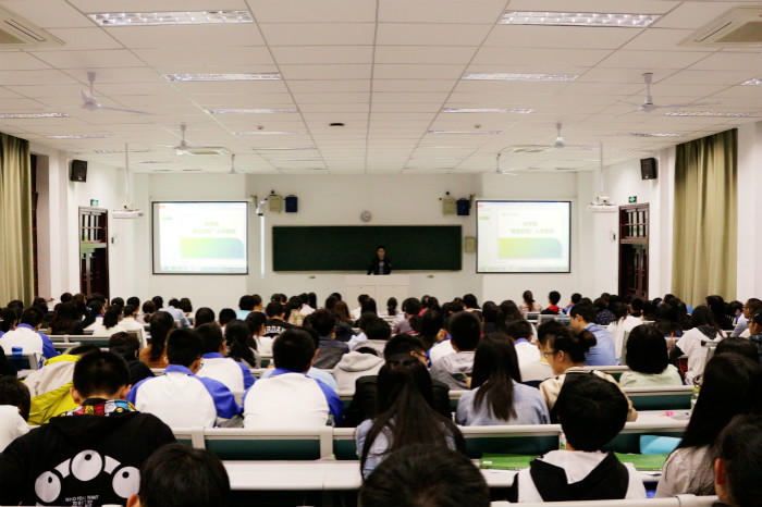 10月13日晚,91自拍 于主楼133召开“新生十课”入学教育。91自拍 学生会主席仲开泰主讲。2016级全体学生参与活动。