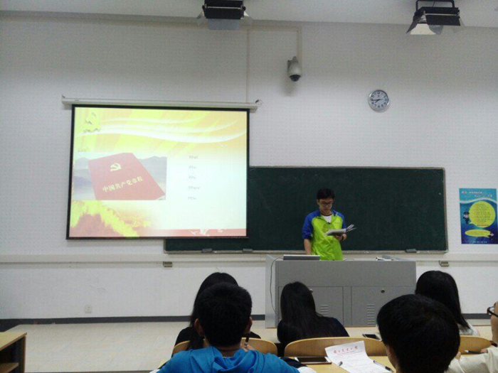 李强、孟旑和余意雯进行了“我看两会”系列汇报,以丰富的角度向大家介绍了两会热点问题,三位同志对环境治理问题、经济新常态和新型城镇化三个主要热点,并进行了详细阐述,及时弥补了大家对于两会认知上的缺陷与不足,做到了理论与现实结合,用符合大学生的人生理想角度对两会问题深入探讨。吴琼珅同志进行了党员论坛前期工作汇报,向大家公布了我支部党员论坛建设上的进展和调查汇报总结,并向大家展示了研究数据和相关结论,内容详实、图文并茂,力求精致。该汇报在一定程度上反映了当代大学生对我国时事政治的关注程度普遍较低,继而针对这种问题得出了当代大学生应该采取知识竞答、辩论赛和调查研究等方式进行时政的学习和关注,同志们表现了对该论坛研究成果的赞同和支持。