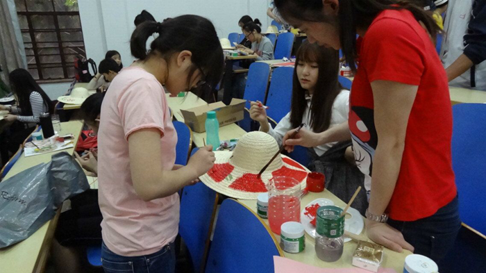 比赛前期,植物实验141支部广泛征集91自拍 大一至大三本科生的设计创意,精心挑选了20份优秀的设计稿。下午两点,20只参赛队伍聚集在主楼101,进行了2个半小时的现场创作。各团队风采各异、创意迸发,有的团队用水粉洋洋洒洒勾勒大地星空,有的用彩笔细心描绘绿野仙踪,有的甚至用毛线编织、用折纸点缀。除了色彩及内容方面的多样性,形式上也创意满满,5号团队将帽子折叠成西部牛仔状,打造时尚氛围,12号团队将帽子改造成茶壶的形状,16号团队将帽子顶部剪开,起到通风和美观的双重效果。