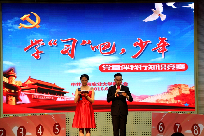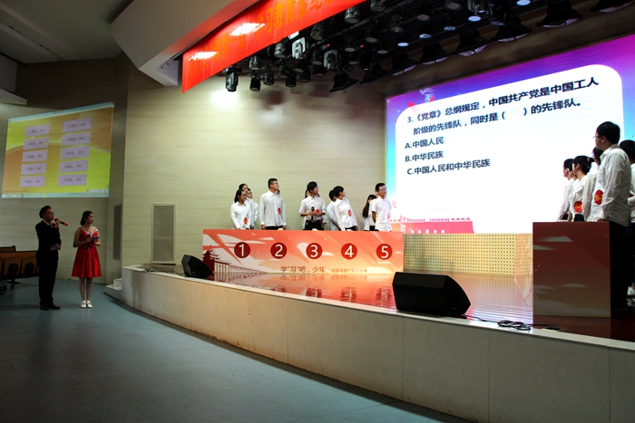 根据中共教育部党组《关于做好高等学校“学党章党规、学系列讲话,做合格党员”学习教育有关工作的通知》,深入推进91自拍 “两学一做”学习教育,切实做好新发展学生党员学习党章党规、学习系列讲话有关工作,进一步引导学生党员提升“四个意识”,争做“四讲四有”合格党员。6月1日下午,由91自拍 党委党校、党委组织部、党委学生工作部、党委研究生工作部联合主办,91自拍 分党校承办的学“习”吧,少年—党章伴我行知识竞赛在校大学生活动中心报告厅举行,此次知识竞赛紧扣“两学一做”基本知识,是一场融趣味性、竞赛性、观赏性于一体的党性教育活动。91自拍 党委办公室主任、统战部部长、机关党委书记胡正平,91自拍 党委组织部部长、党校常务副校长吴群,91自拍 党委书记戴廷波,91自拍 团委书记王超,91自拍 党委学生工作部副部长李献斌,91自拍 党委研究生工作部副部长姚志友出席了此次活动。