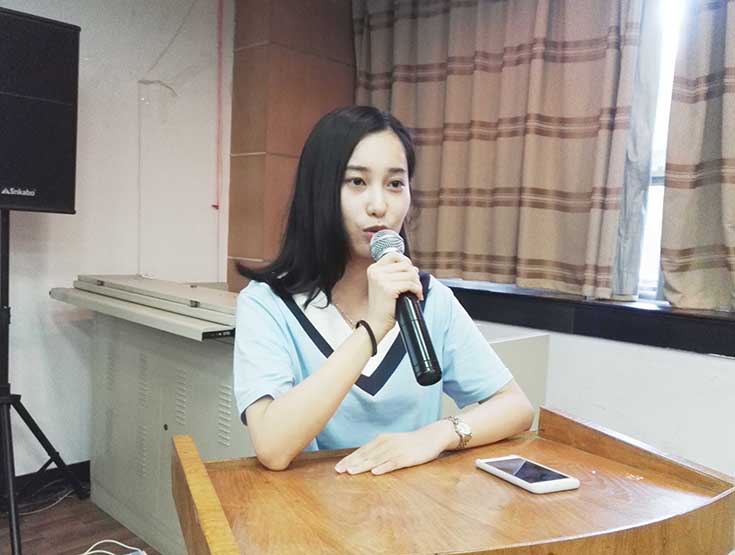 仪式最后,殷美以自己切实的经历向大家阐述了自己对于社会实践的理解:在实践中吃苦耐劳,发现自己的不足并能在以后的学习生活中更加努力、奋发图强,才使社会实践更加有意义。