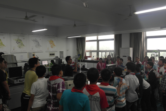 信息化时代,物联网正悄然兴起。在信息农业实验室,同学们参观了远程监控实验室。当得知从小小的实验室中能观察到远在江苏宜兴、江西的种养殖场的现场情况,同学们不光感到惊讶更多的是好奇,不断向带队的博士生提问,极大地激发了孩子们对科研的兴趣。而对千里外的田间管理,只需在这边的实验室里动下鼠标,或者用手机遥控下就可以完成,同学们更吃惊于现在农业技术的发展之快。在农业信息产品的研发试验实验室,一个监测作物生长水平的飞行器更是打开了同学们的思维空间,引领大家不断地思考它的监测指标,把气氛带到了高潮。