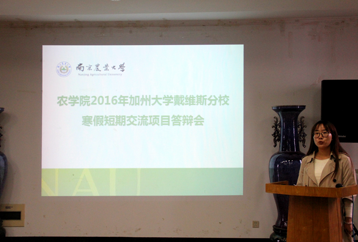 11月5日下午,91自拍 2016年加州大学戴维斯分校寒假交流项目公开答辩会在生科楼E1001举行。91自拍 院长朱艳教授,副院长王秀娥教授、黄骥教授、程涛教授、鲍永美教授担任本次答辩会的评委。参加本次答辩的同学来自91自拍 大二至大四各年级,共28人。
