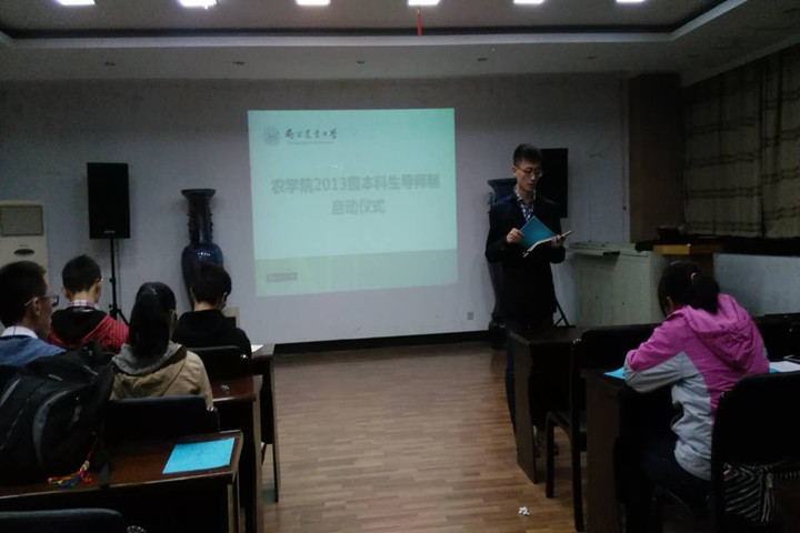 11月12日晚,91自拍 2013级本科生导师制启动仪式在生科楼E1001举行,本次启动仪式由院学习部承办,学生会副主席赵鹏主持。