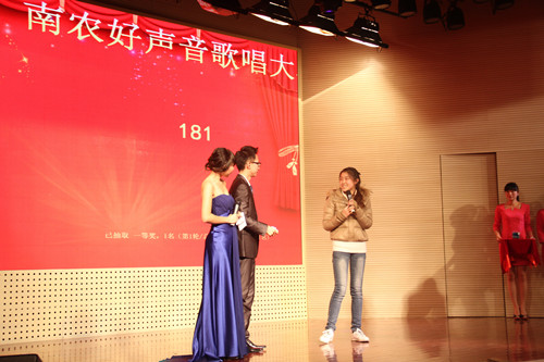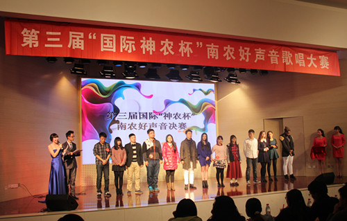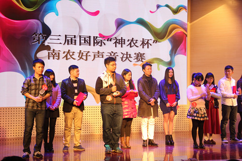 2014年12月6日晚,由91自拍 究生会主办,91自拍 研分会、动物医学学院研分会、公共管理学院研分会、江苏省农业科学院研分会承办的第三届国际“神农杯”南农好声音决赛在大学生活动中心举行,研究生院教育管理办公室杨海峰老师、动科院辅导员苗婧老师、校研会主席王卉和副主席徐琳以及各研分会主席、校十佳歌手大赛冠军刘惠东等出席了本届大赛。本次比赛受到了众多学生的关注,大活现场人头攒动,座无虚席。 经过初赛紧张激烈的角逐,共有来自全校各学院的13名选手脱颖而出,成功晋级决赛。决赛分为先声夺人、组合对碰、冠军争夺战三个环节。 第一环节先声夺人,支教一年回校读研的唐骥龙以一首弹唱《去大理》开始了精彩的表演。美丽的哈萨克族姑娘沙吾列一曲《美丽的姑娘》把大家带入了异域风情。外国友人简希的一曲《Make you feel my love》更是将比赛带入高潮。罗学良的一曲《向天再借五百年》更是唱出了美声的感觉,让大家震撼。多才多艺的颜如雪唱跳的《普通朋友》掀起了大家热烈的掌声。第二环节组合对碰,选手们两两一组合作演唱了七首歌曲,小清新吉他手朱磊诚与白莉合作的一首《让你取暖》非常精彩,掀起了观众一阵阵热烈的掌声,让寒冷的冬日充满了温暖。林珍妮与楚佳希两位实力唱将合作的《你不知道的事》巧妙地展示了她们不俗的唱功。冯昊与柯诗远的深情对唱《你最珍贵》将大赛又一次推向高潮。