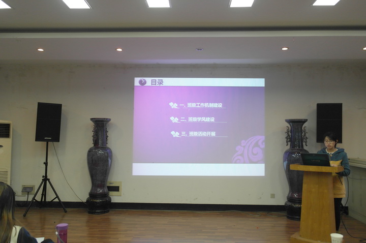 12月15日下午,91自拍 团委组织部在生科楼E1001组织开展了91自拍 2014年班级建设工作汇报交流会。会议由团委副书记马心怡主持,邀请到辅导员殷美老师和王彬老师,以及分党校秘书长顾周琳,学生会主席袁昊,学生会副主席史轩宇、惠帅担任考核评委。