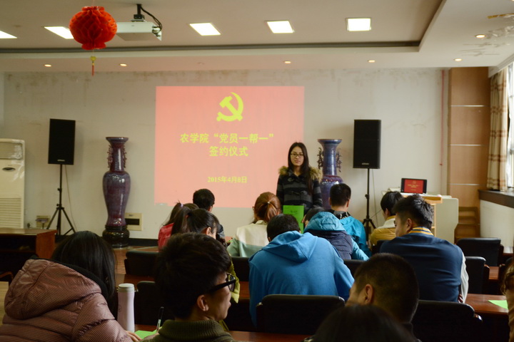 签约仪式上,党员及其帮扶对象悉数到场,大家交流互动,互相熟悉,相处十分融洽。随后,参会人员依次发表签约宣言:农学专业三党支部的宋健希望能和被帮扶团员共同进步,种子专业一党支部的张佳琪为自己和被帮扶团员制订了一周至少共同学习六小时的学习计划,农学专业一党支部的王琪表示期待和被帮扶团员一起学习专业知识……