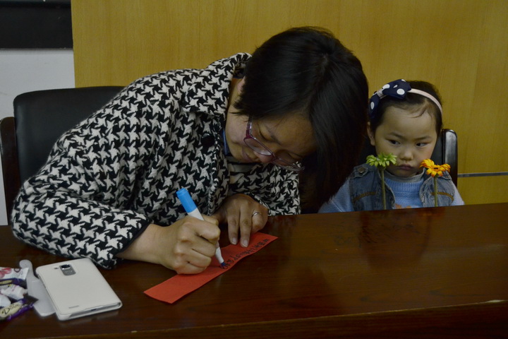 启动仪式共分为四个模块:第一模块是“小小心愿瓶”,家长把对孩子的希冀写下来放入心愿瓶内,希望在来年看到孩子像纸条上写的那样有所进步;第二模块是“小手拉大手”,通过游戏来营造轻松愉快的气氛,促进家长、小朋友和志愿者之间的沟通,消除陌生感,增强三者之间的信任度和默契度;第三模块是“神秘人物是谁”,顾周琳同学妆办成熊猫校长,给小朋友制定了“校规”,希望大家遵守,同时还为游戏中表现突出的小朋友进行了颁奖;第四模块则是“种太阳”活动,在父母和志愿者的帮助下,每个小朋友都种下了两颗向日葵种子,并在期末进行评比,本环节培养了小朋友们对自然的热爱。