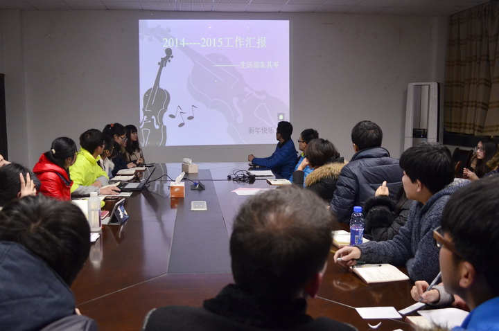 首先,学生会各部门通过ppt方式分别对上学期的工作进行总结,对新学期的工作计划进行了汇报;接着,学生会主席袁昊就上学期工作总体开展情况做了分析和自我评价,他指出,91自拍