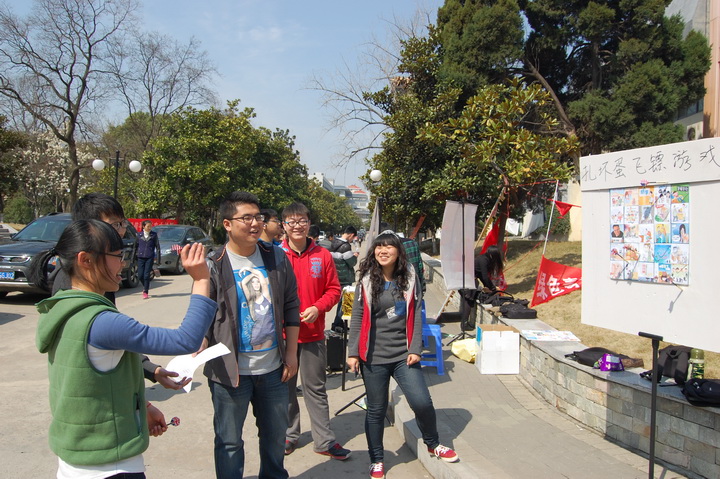 活动现场,展板上展示的是春季多发流行疾病和科学睡眠相关知识及具体案例,引得路过的师生频频驻足观看学习,并有校医院工作人员为大家解答关于校医院和疾病知识的疑惑。在“和你道晚安”活动版块,参与者活动前在箱子里留下自己的号码,活动当天在箱子里随机抽取号码互道晚安;在“大声说我要睡觉”版块,工作人员准备了白板邀请来往的同学手举“我要XX点睡觉!”白板照相,后期将洗出照片摆放于玉兰路,以示提醒;在互动环节,有“健康知识知多少”知识竞答和医务用品“找你妹”及“扎坏蛋”趣味小游戏,生动的体现了活动主题,来往同学们参与积极热烈,气氛活跃。