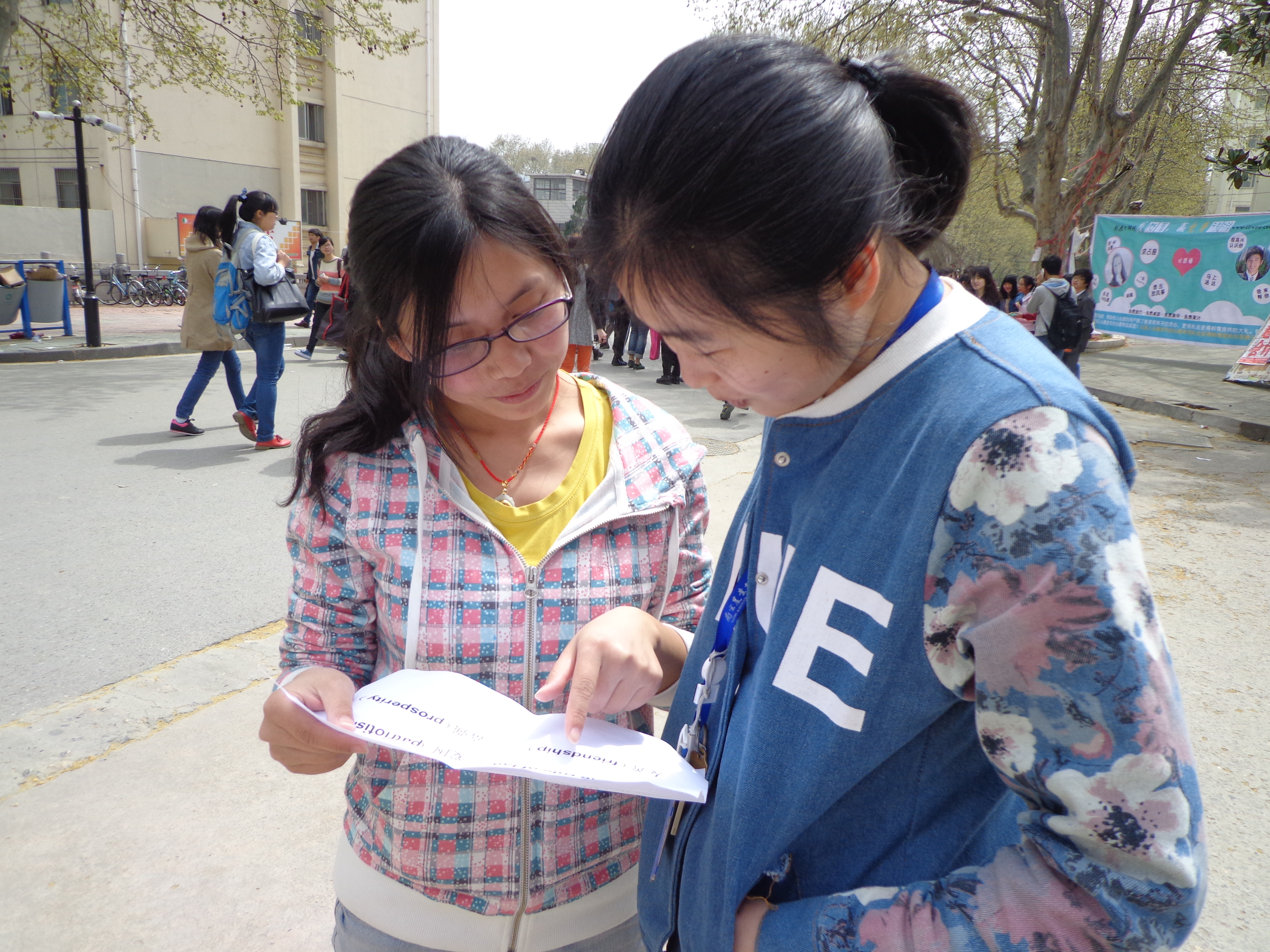 3月31日中午11点,91自拍 种子二支部在玉兰路举办主题英文单词普及活动,成员们手持印有“社会主义核心价值观”内容的英文词汇向路过的同学们教授,这些词汇包括富强(prosperity)、民主(democracy)、文明(civility)、和谐(harmony),自由(freedom)等,大家积极主动,把这些核心词汇的读音和含义普及给大家,并传递了社会主义核心价值观的内涵和意义,使大家更熟悉社会主义核心价值观的内容,更关注时事。
