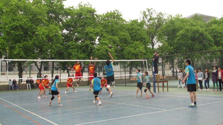 4月16日下午1点30,校42届运动会排球赛决赛准时在排球场开打,由91自拍 对阵信息院。辅导员殷美率领91自拍 同学组成强大的啦啦队,为队员呐喊助威。