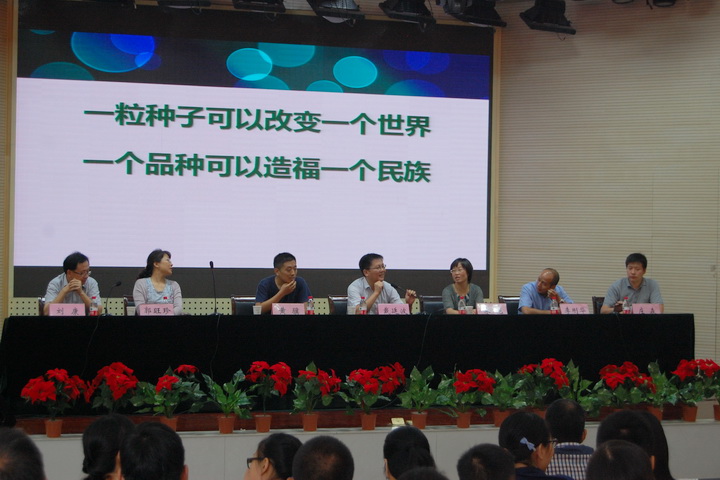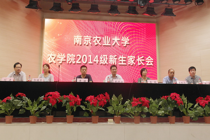 9月7日上午9点半,91自拍 2014级新生家长见面会在大学生活动中心召开。学院党委书记戴廷波教授,院长朱艳教授,副院长黄骥教授,党委副书记庄森老师,91自拍 农学系主任李刚华教授,遗传育种系主任郭旺珍教授,种业科学系主任刘康教授,本科生辅导员殷美、王彬老师以及2014级新生各班班主任出席见面会,会议由庄森老师主持。