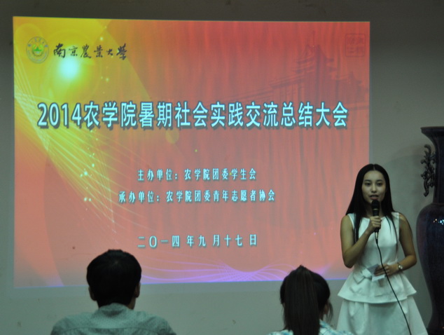 交流会上,十个社会实践团队分别展示了自己的风采。其中八个团队通过走访农村,深入农民生活调研,分享了他们眼中的农村新面貌以及对未来农民生活水平进一步提高的美好希冀。其中“农学人在路上”团队通过访问基层群众,宣讲科普知识,参观农业企业,支持播种梦想等不同层面,不同形式的实践经历打动评委,一举夺魁。“和弦农村”团队的南通市如东之行,通过与正大集团的合作,与村民面对面,向村民宣讲了新兴农业政策,普及先进农业知识,获得了媒体和社会的一致好评。两个大二团队通过他们的青奥会志愿服务经历,向我们展示了一路上的欢笑与泪水,为我们奏响了新时代青春的最强音。