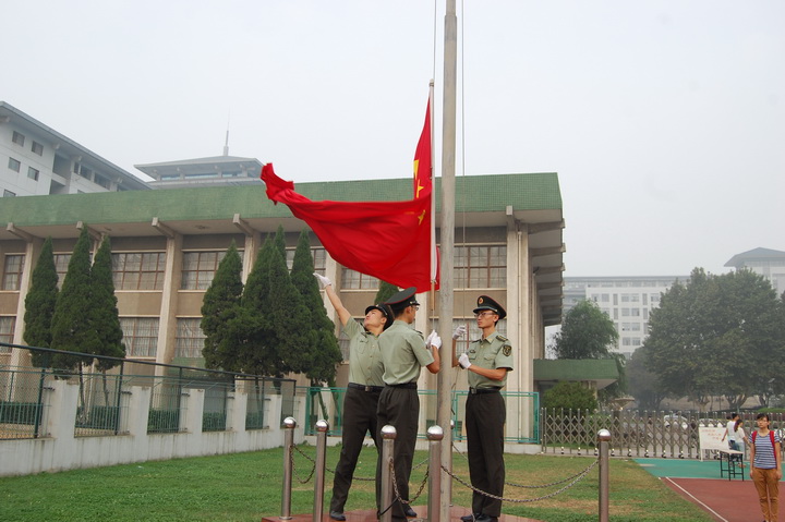 入场结束后,进行升国旗仪式,全体人员起立,奏国歌,伴随着庄严的国歌声,五星红旗在全体人员的注视下冉冉升起。随后,裁判员代表姜典良和运动员代表高雪分别向大会做了宣誓,这也标志着它将是一场公平、公正、公开的赛事。最后,91自拍 辅导员王彬老师宣布运动会开幕,同时他预祝大会取得圆满成功。
