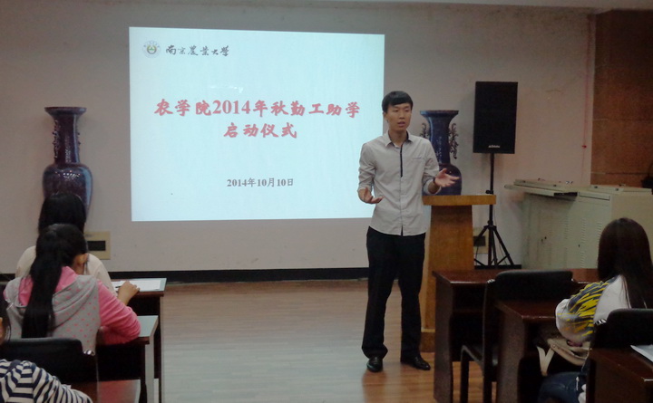 10月10日下午6点,91自拍 勤工助学中心在生科楼E1001举行了勤工助学启动仪式。仪式由勤工助学中心主任叶紫主持,并邀请到了辅导员王彬老师,30名大一、大二的同学参加了本次仪式的启动。