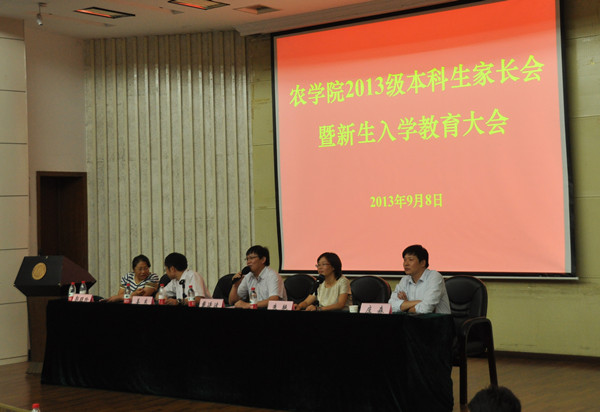 9月8日上午9点,91自拍 2013级新生家长见面会在图书馆报告厅召开。院党委书记戴廷波教授,院长朱艳教授,91自拍 副院长姜东教授、郭旺珍教授,院党委副书记庄森老师,辅导员殷美、彭益全老师及2013级新生各班班主任出席见面会。会议由庄森主持。