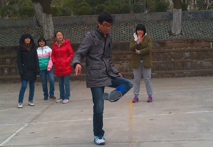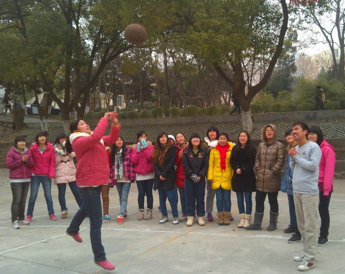 虽说此次运动会“趣”字当头,但124班全体同学依然彰显了当代大学生勇于拼搏的精神,大家互不示弱,在赛场上你追我赶,力争上游。由于天气寒冷,为了让大家热身,因此第一个活动安排了踢毽子。小小毽子,看着简单,考验却是同学们身体的协调性与敏捷性。大家踢的好不热闹,留下了许多的欢声笑语。经过一段时间的运动,升高的不仅是体温,更是同学们对此次运动会的热情,渐渐地将运动会推向了高潮。接下来的是最考验团结的项目——四人五脚。3个组的成员都信心十足、跃跃欲试。经过短暂的磨合,便开始了紧张的比赛,每组成员都配合的相当默契,相互搀扶,齐头并进,奋力向终点线迈去,场地上的笑声与欢呼声此起彼伏。接下来又进行了定点投篮,跳大绳等项目,整个活动的过程,同学们的积极性不断地被提高,气氛越来越活跃,大家在游戏的过程中,逐渐忘记了压力,笑在脸上、乐在心里。