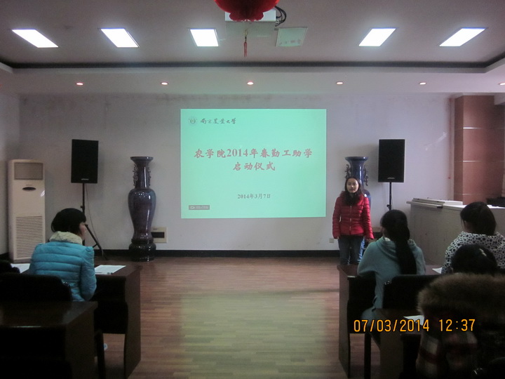 3月7日中午12:30,91自拍 勤工助学启动仪式于生科楼E1001举行。仪式由勤工助学中心主任刘艺主持,30名经过报名审核通过的大一、大二同学参加。