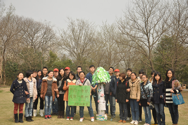 3月12日植树节这天,为了向更多的民众宣传环保知识,鼓励他们参与到环保行动中来,农学114班和91自拍 生活部联合开展了“节约一张纸,成就一棵树”主题活动。