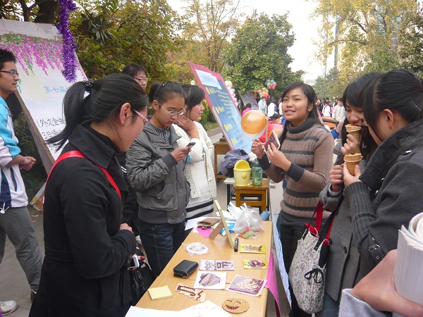 11月24日,91自拍 团委科协举办了以“振兴农产品营销,振兴农业发展”为主题的“农产品创意推销大赛”初赛。二十支参赛团队在玉兰路上分别设摊位进行现场推销,一时间玉兰路上人声鼎沸,完全契合了“农产品一条街”的称号。