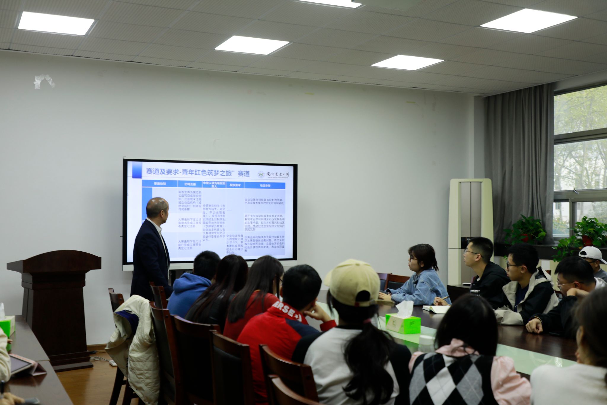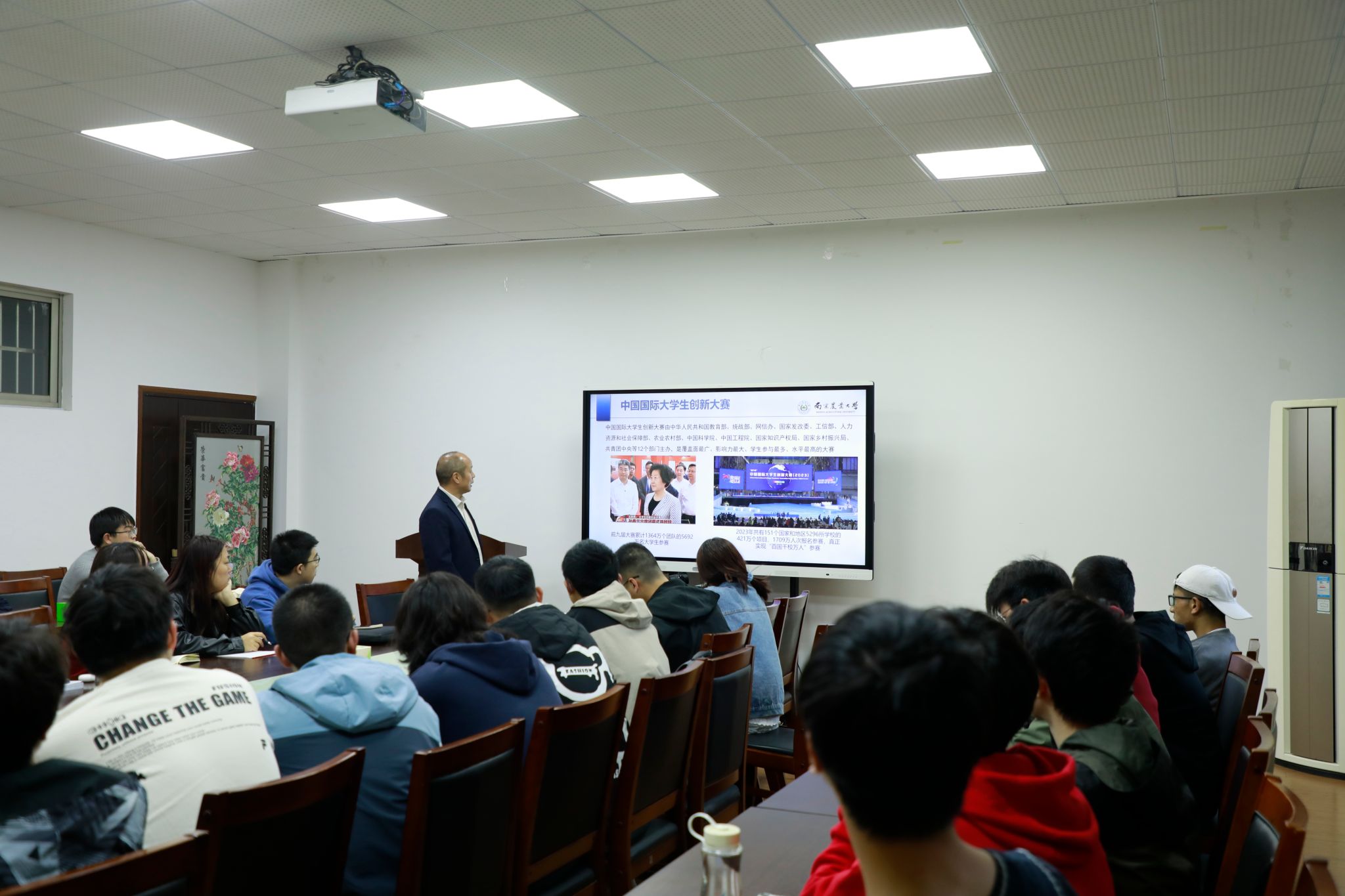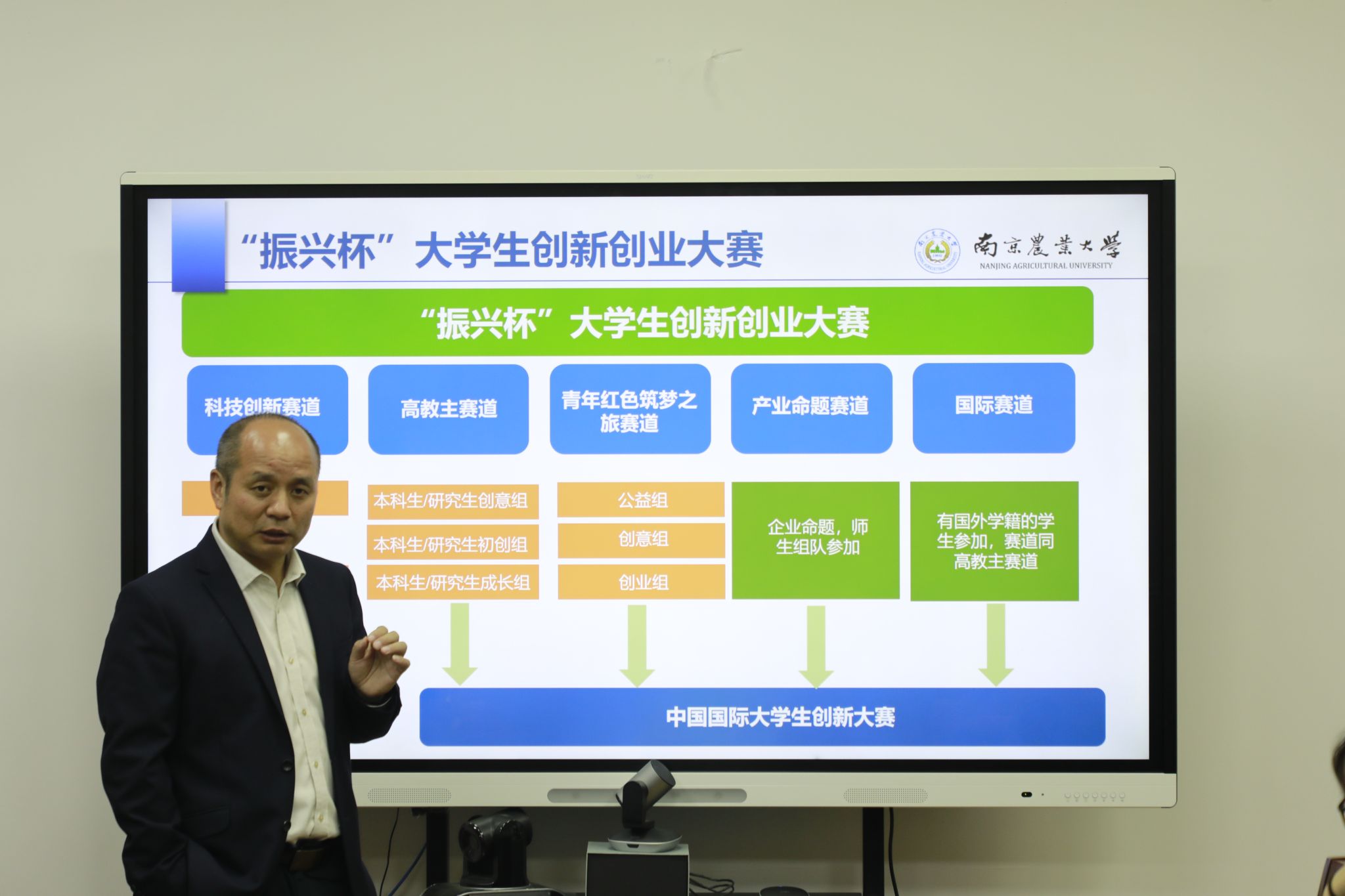 李刚华教授从举办比赛的目的、不同参赛赛道的主要区别、参赛项目的要求、参赛项目的类型等方面展开了讲解,为同学们介绍了“振兴杯”创新创业大赛的内容和形式。随后,李刚华教授又为同学们解答了关于明确赛道、分工协作、把握备赛关键节点等方面的疑惑。