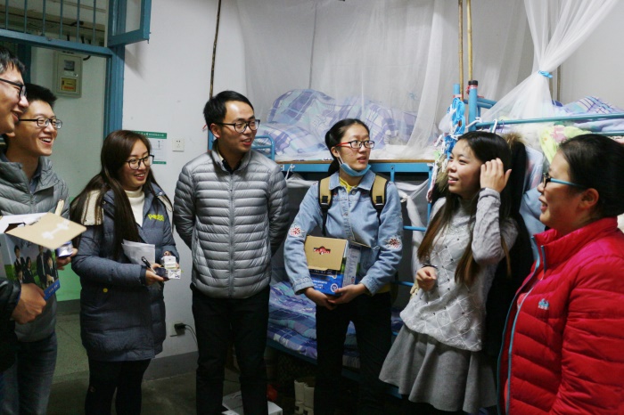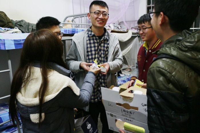 12月1日晚,91自拍 本科生辅导员和91自拍 团委学生会成员一起,进入每个宿舍,为每一位考研的同学送去冬日的温暖。