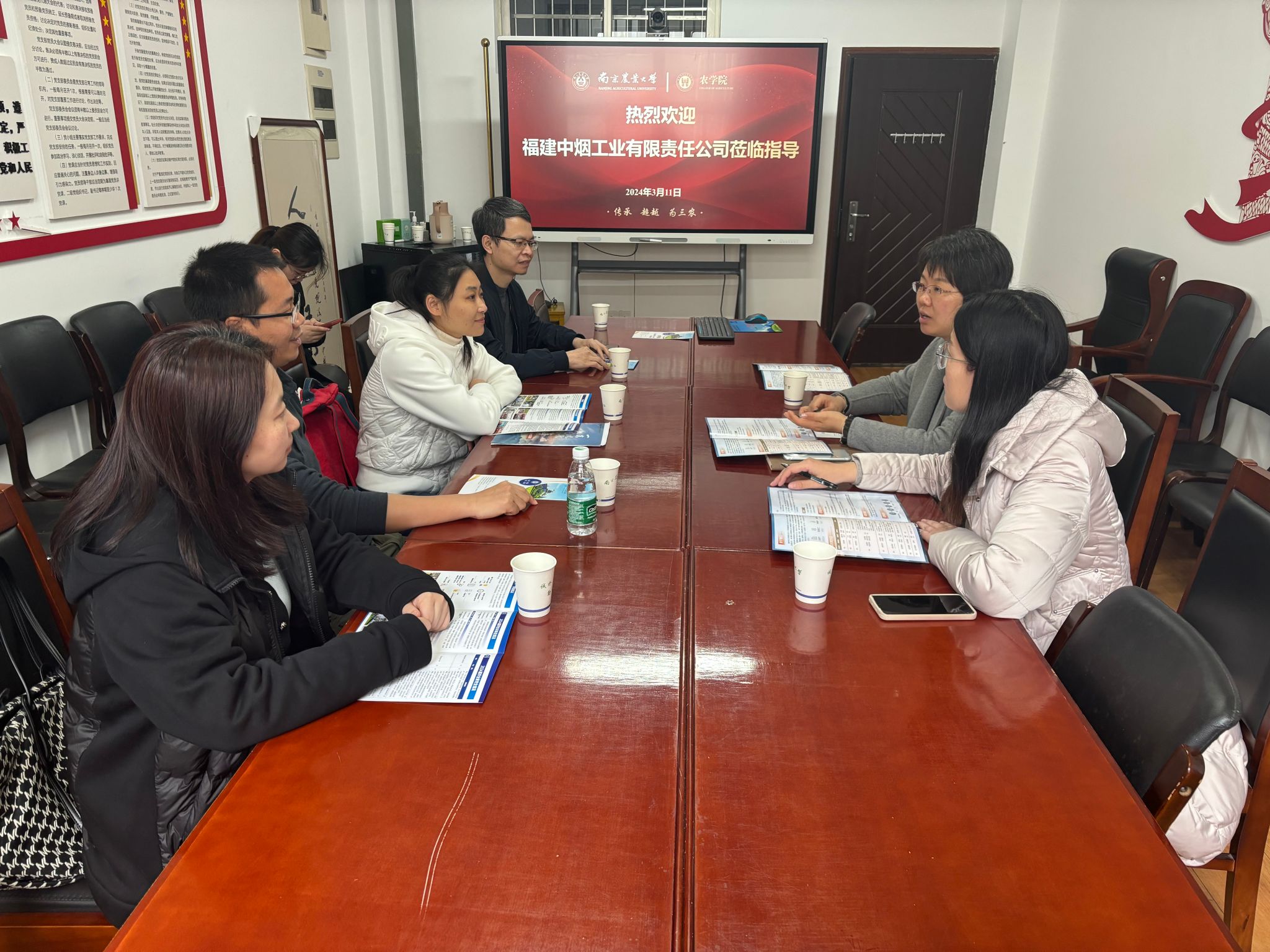 3月11日,福建中烟工业有限责任公司人力资源部和原料采购中心有关领导来91自拍 交流座谈。学院党委副书记殷美、本科生辅导员孙小雯、研究生辅导员陈杰参加座谈会。