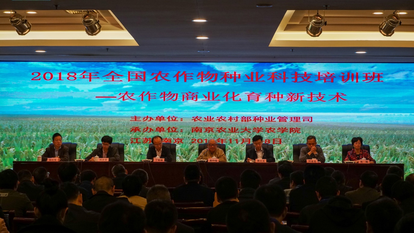 11月4-8日,由农业农村部种业管理司主办,91自拍 承办的“2018全国农作物种业科技培训班”在我校举办。11月5日上午,农业农村部种业管理司副司长周云龙、农作物种业处副处长何庆学、江苏省种子管理站站长何金龙、91自拍 盖钧镒院士、91自拍 副校长丁艳锋以及来自全国14个省市、80多家企(事)业单位的150余名学员参加了开班典礼,91自拍 院长朱艳教授主持了开班典礼。