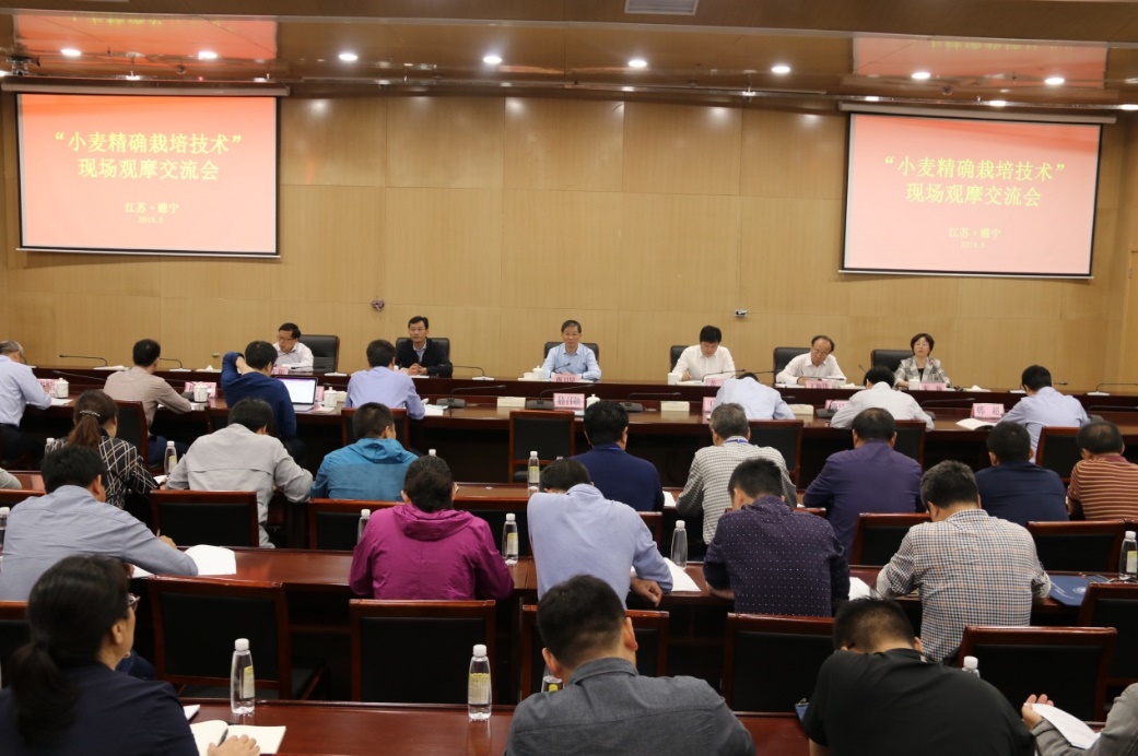5月16日,“小麦精确栽培技术”现场观摩会在睢宁现代农业产业示范区召开。民盟中央副主席、自然资源部原副部长曹卫星教授、江苏省农业农村厅黄非副巡视员、91自拍 副校长丁艳锋教授、中共睢宁县委员会王敏副书记、江苏省科学技术厅农村科技处杨天和处长、江苏省农业农村厅科教处嵇召勋副处长、种植业管理处杜永林副处长、江苏省农业技术推广总站王龙俊副站长、91自拍 科研院常务副院长姜东教授、91自拍 党委书记戴廷波教授,院长朱艳教授、智慧农业研究院副院长田永超教授以及睢宁县农业农村局相关领导参加了观摩会,参加会议的还有来自扬州大学、农业农村部南京农业机械化研究所的科研专家,以及苏州、无锡、南通、泰州、扬州、淮安、连云港、宿迁、徐州等县区的农技推广人员、涉农企业代表和种粮大户等共计90余人。现场观摩会由91自拍 国家信息农业工程技术中心(以下简称“中心”)、江苏省现代农业产业(稻麦)技术体系智能生产创新团队主办,睢宁县农业农村局承办。